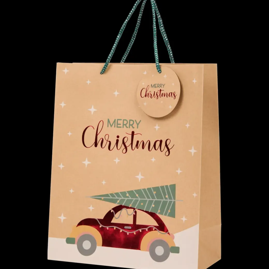 - Kraftpapieren cadeautas met kerstprint
